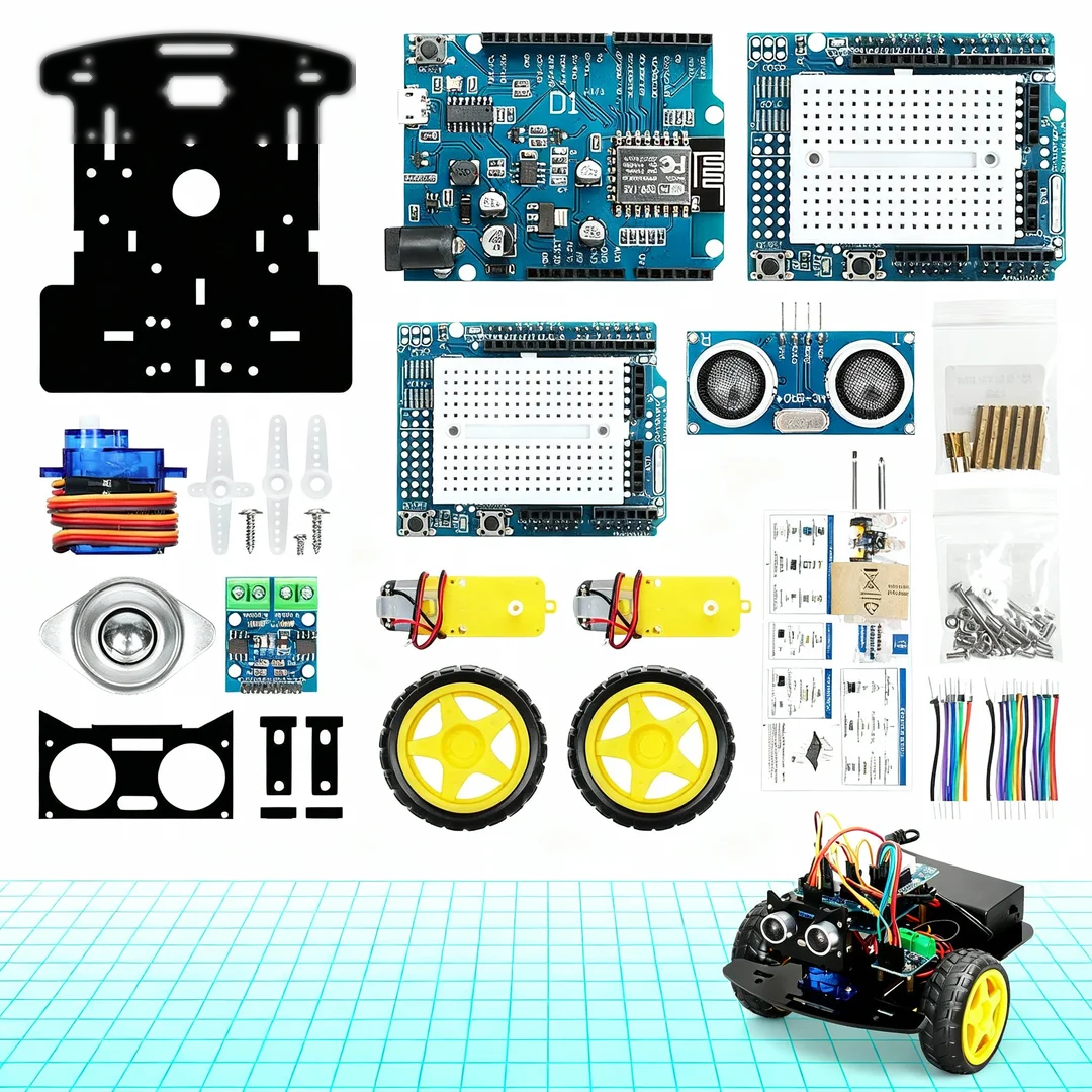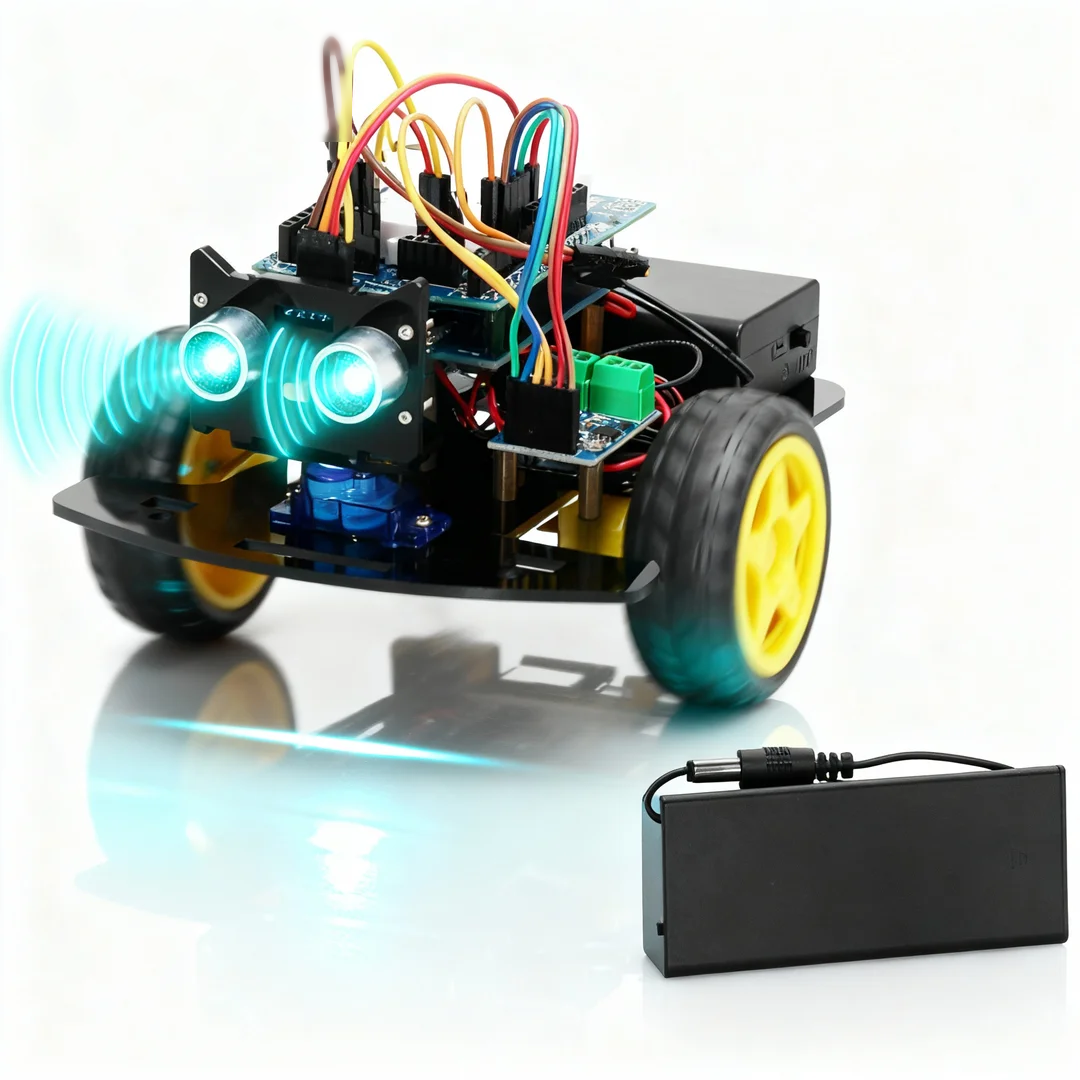 The robot includes ultrasonic distance sensors for obstacle avoidance, infrared modules for line following, and photoelectric components for route mapping. Together, they create a multi-sensor fusion environment, where data from different sources is combined for accurate navigation. Users learn how embedded systems handle concurrent data inputs and how AI logic prioritizes sensor signals. This concept mirrors modern self-driving technology — integrating vision, radar, and ultrasonic perception into one intelligent control framework.
