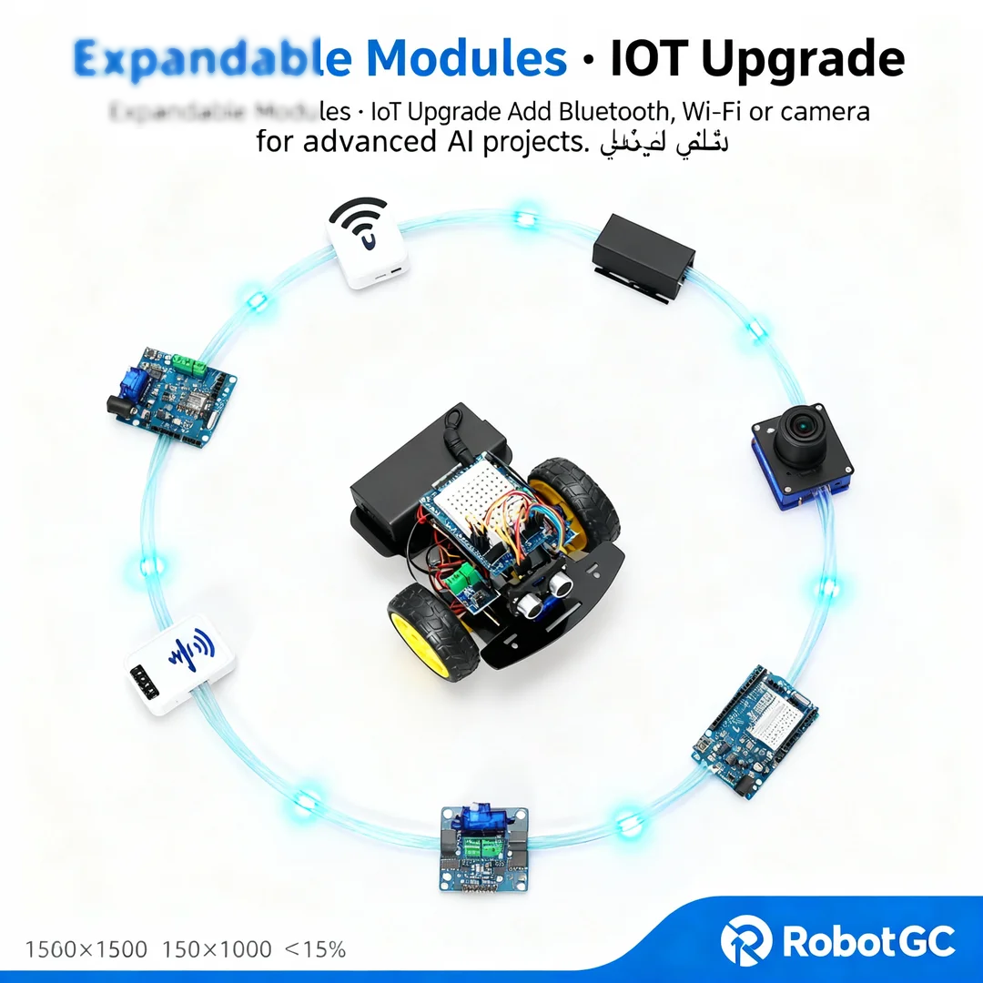 The kit fully supports Arduino IDE, ESP32 SDK, and MicroPython. Users can write programs in C++ or Python, upload firmware through USB or Wi-Fi, and create custom AI behaviors. The Wi-Fi control interface enables smartphone-based steering, camera rotation, and sensor data visualization. Educators can design project-based learning modules focusing on AI, robotics, and coding logic. This open platform bridges hardware control with software intelligence, making it an essential learning tool for 21st-century education.
