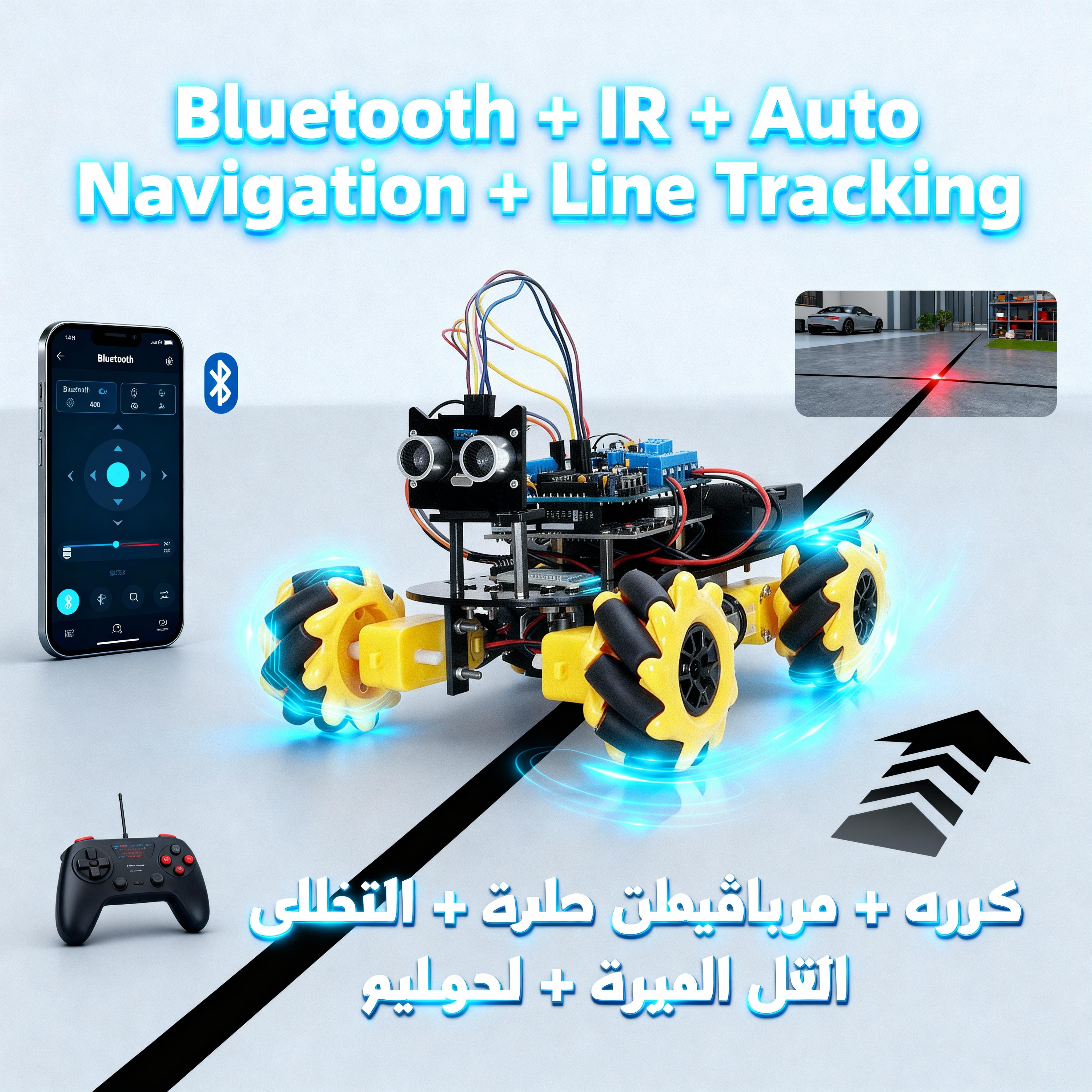With a built-in HC-06 Bluetooth module and triple infrared tracking sensors, the robot supports smartphone control and autonomous line following. The Bluetooth interface allows real-time speed, direction, and action programming, while IR sensors track contrast lines with high precision. Students explore PWM logic, sensor data feedback, and serial communication in embedded systems.