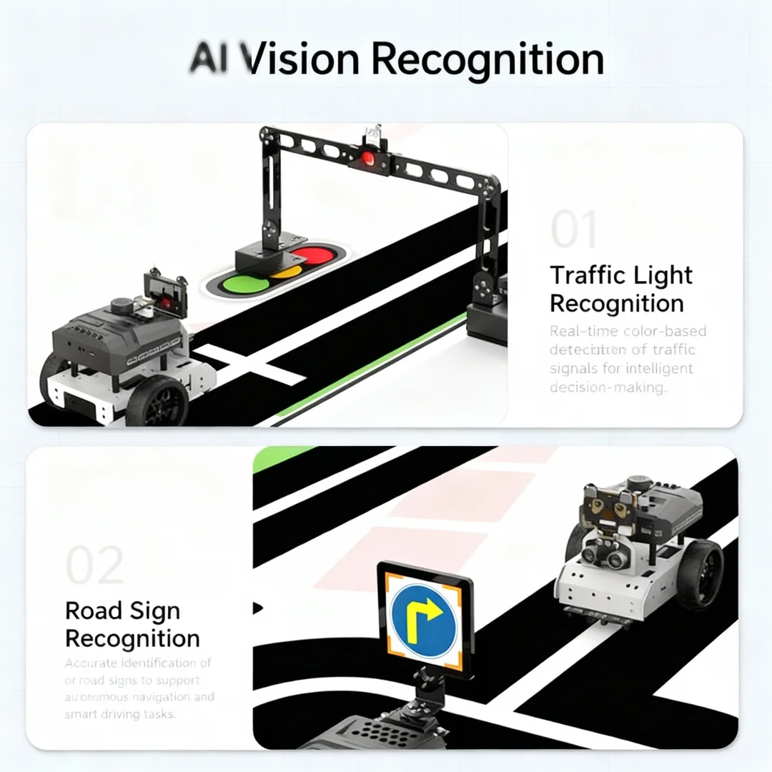 STEM-Focused Educational Platform with Guided Learning Value This AI vision robot platform is purpose-built for STEM education, combining programming, robotics, and artificial intelligence in one integrated learning system. It supports classroom teaching, laboratory experiments, and guided self-learning projects. The robot encourages logical thinking, problem-solving, and creativity through hands-on interaction. Due to the involvement of vision processing, programming logic, and autonomous control, this platform is recommended for use under instructional guidance or by learners with basic programming knowledge. As an educational robot car, it provides long-term learning value, making it suitable for schools, training centers, and families seeking structured and meaningful robotics education beyond simple entertainment.